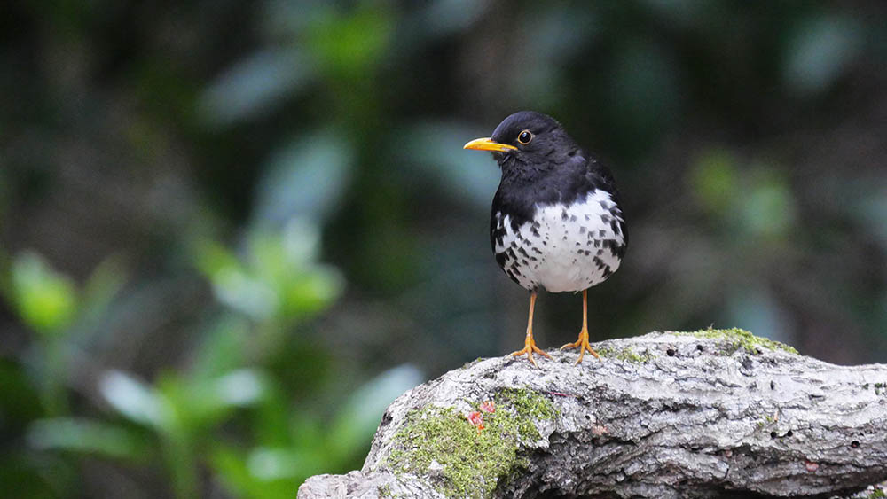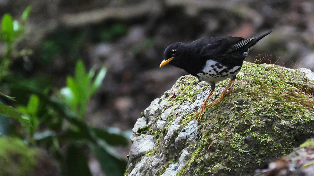 クロツグミ♂(夏鳥) 遠くから跳ねて近付き、チョコンと止まってくれた