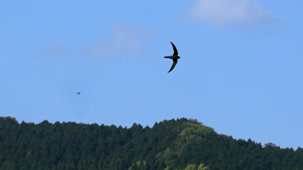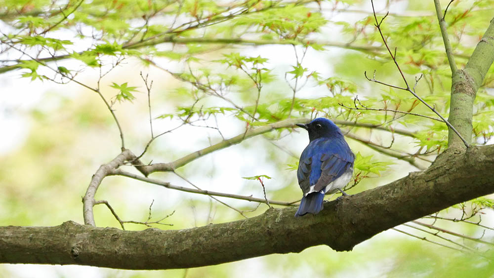 仲間が集合している坊主山では、到着個体のオオルリが直近まで偵察。
