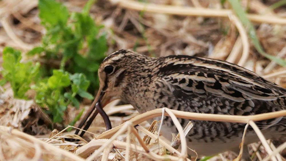 尾根付近の暗がりの多い所は、移動個体が道路脇の虫を食べている。