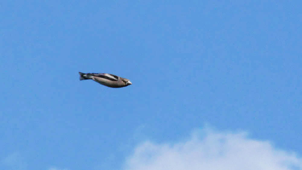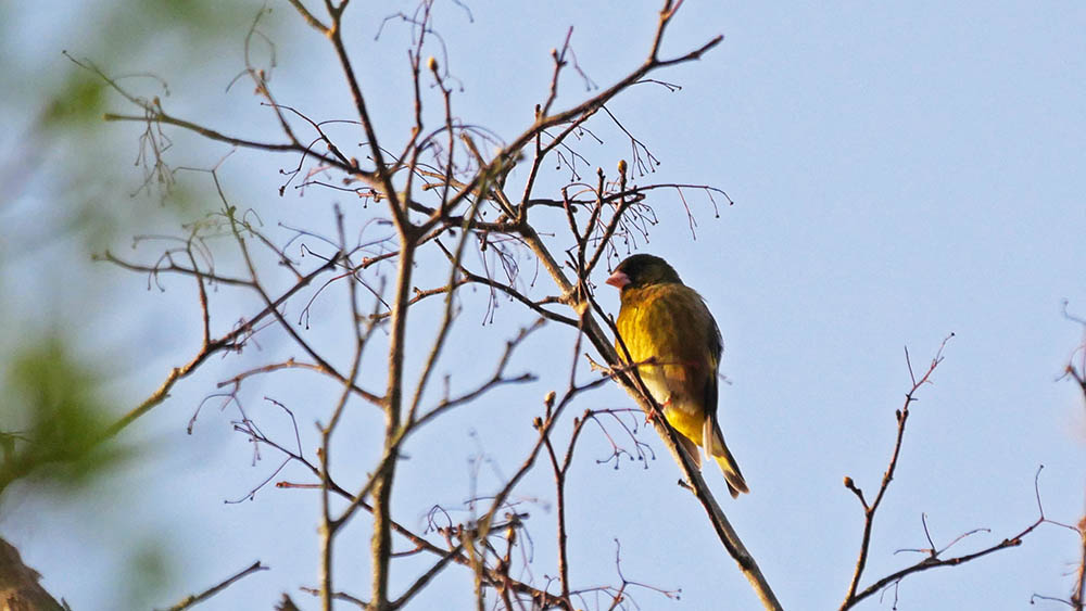 ココ数日、山の方で鳴き声を聞いて姿を見ると、まぎれもなくオオカワラヒワ。