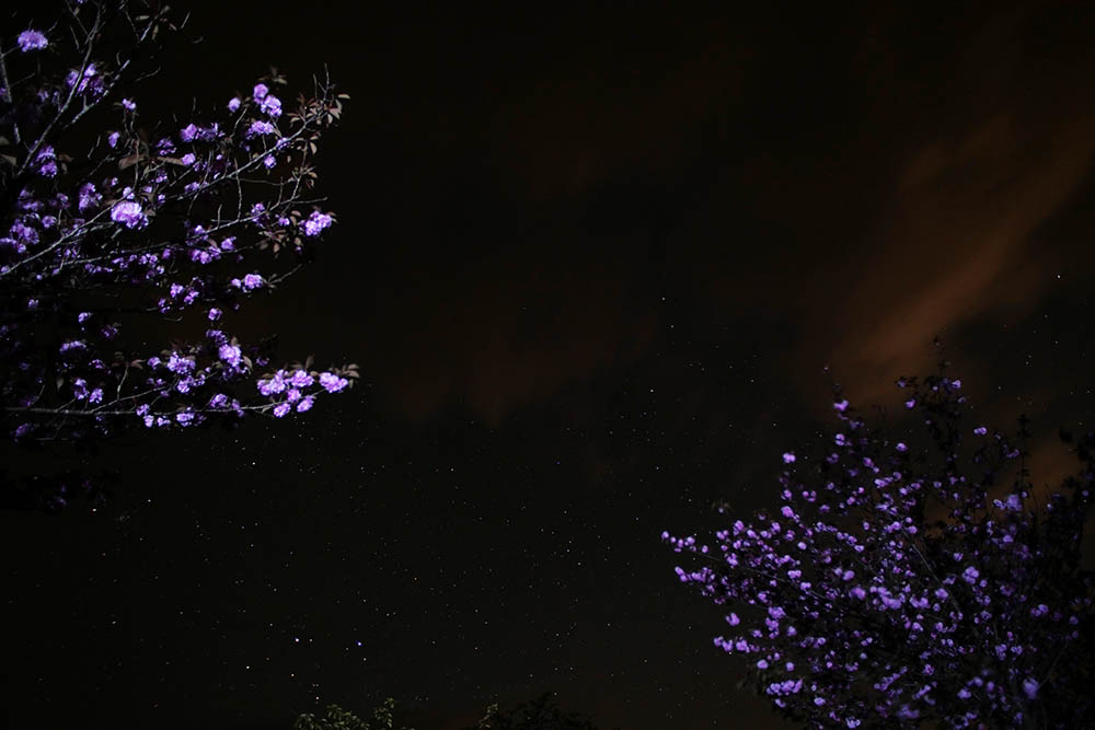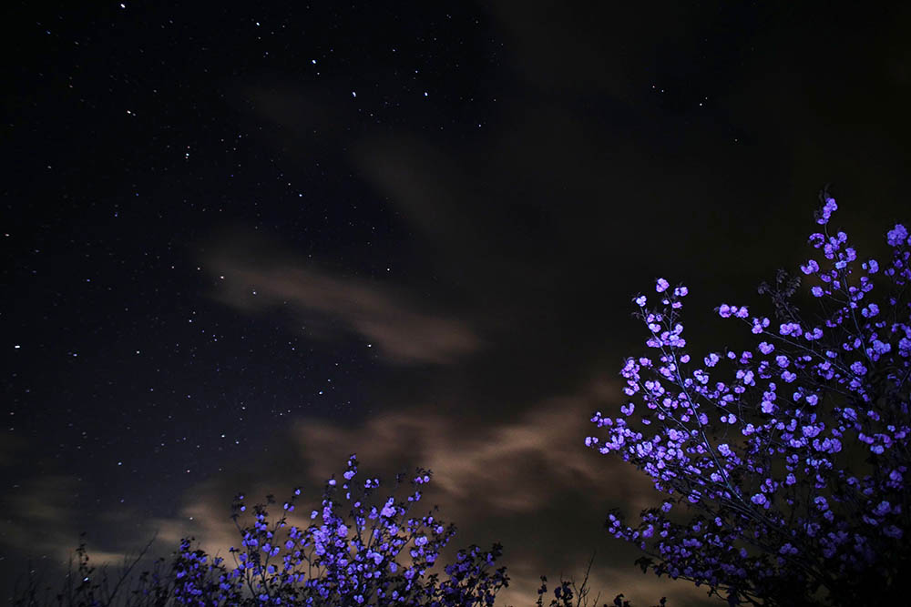 試しに行うと牡丹桜がブレブレ。よって露光中に一瞬の光を当てるやり方。