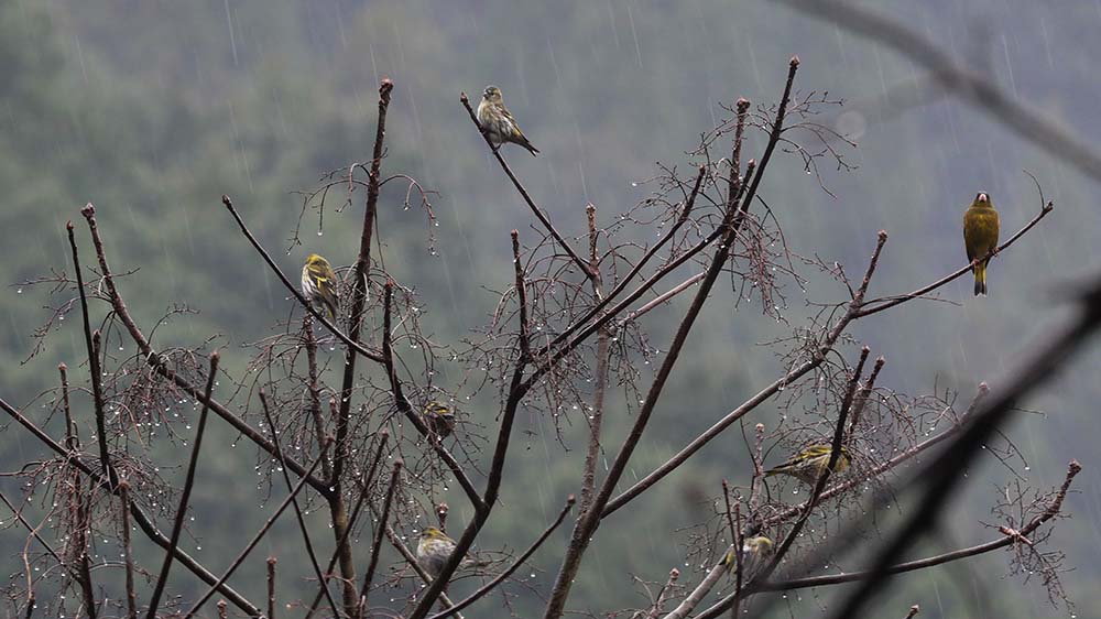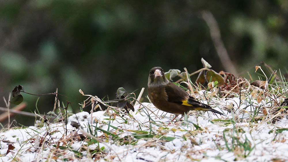 標高500~600m付近まで行きましたが道路に雪は無し カワラヒワ