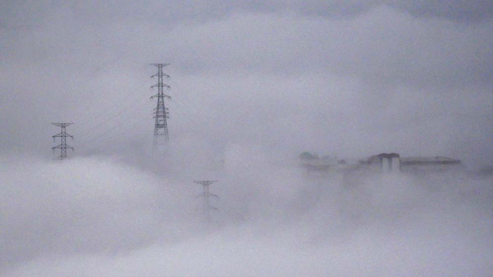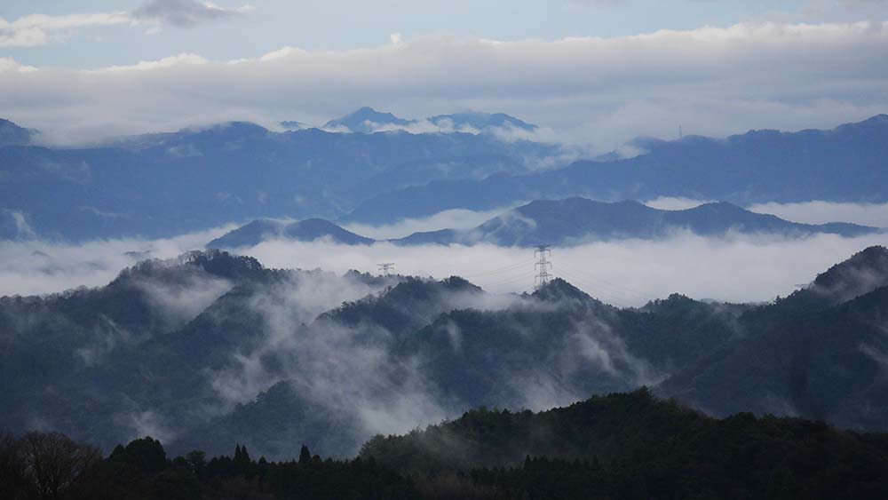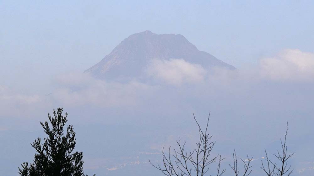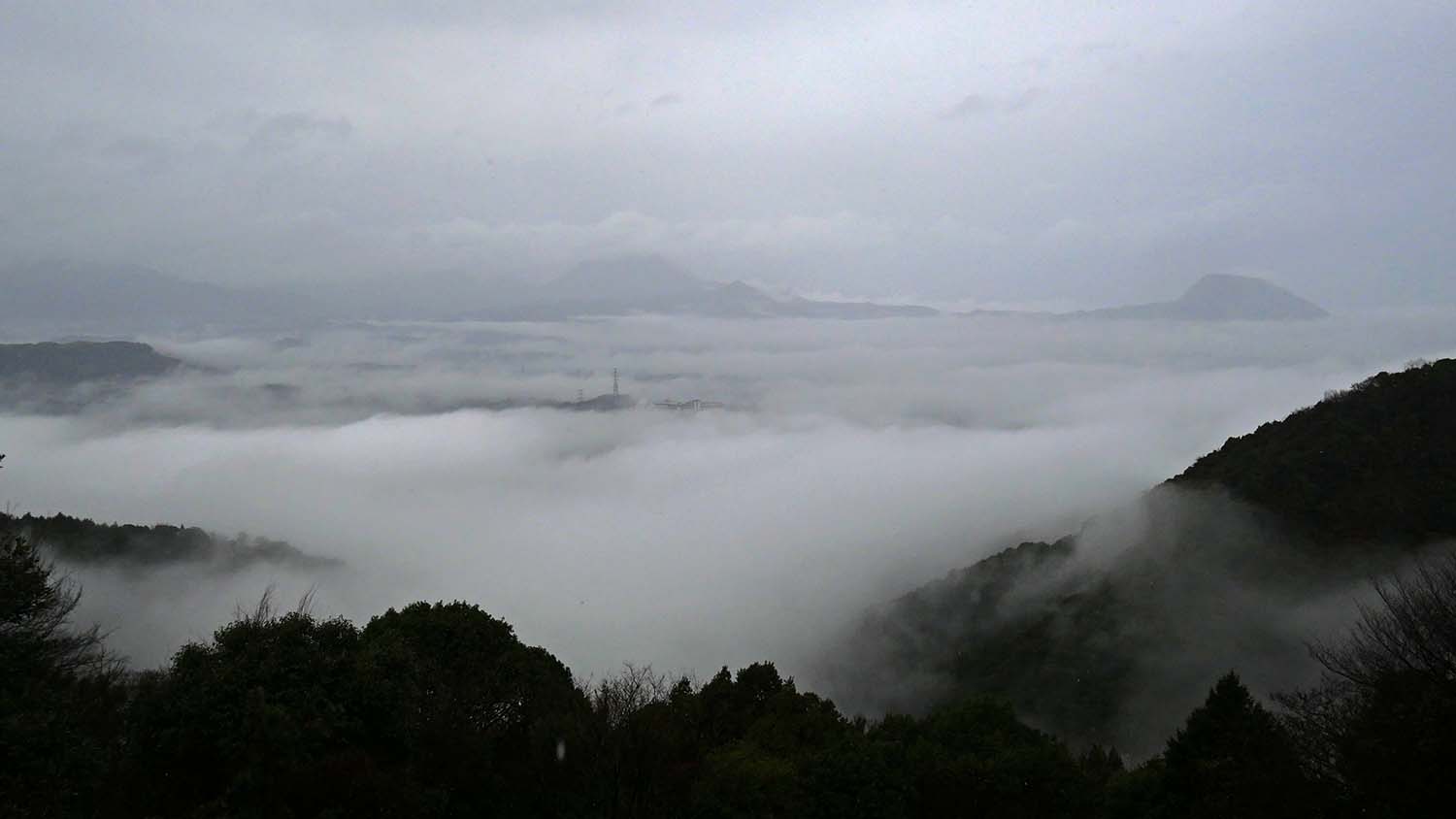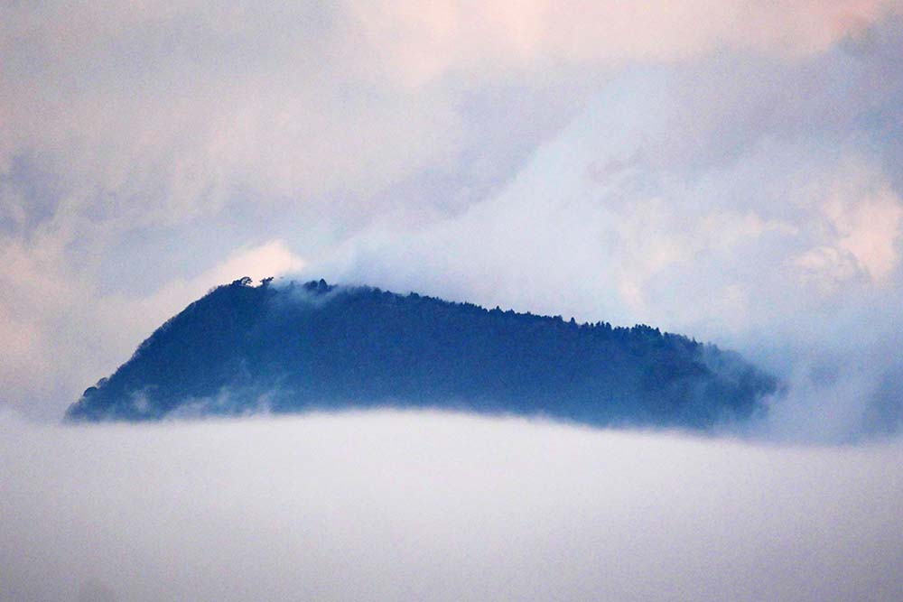 雲の中から顔を出す由布岳