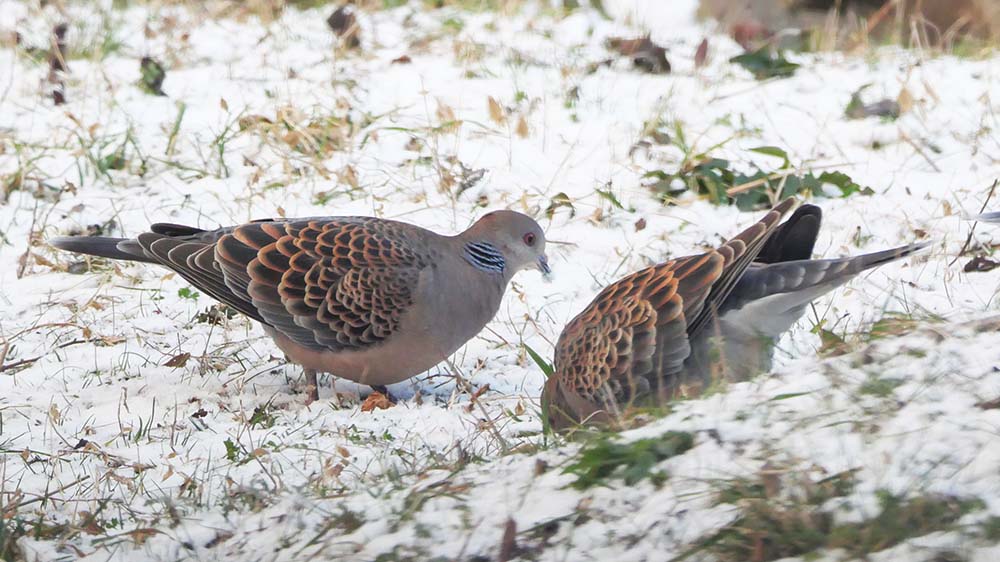今朝の県森はこれくらいの雪 キジバト