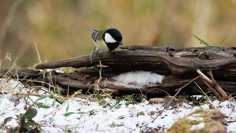 冬型の気圧配置による、乾いた山雪はこれで終りか? シジュウカラ