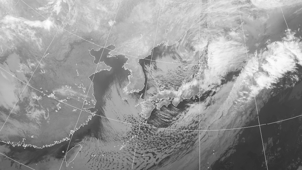 気象庁が確か10分おきに公開している衛星画像、今朝6時前の画像です。