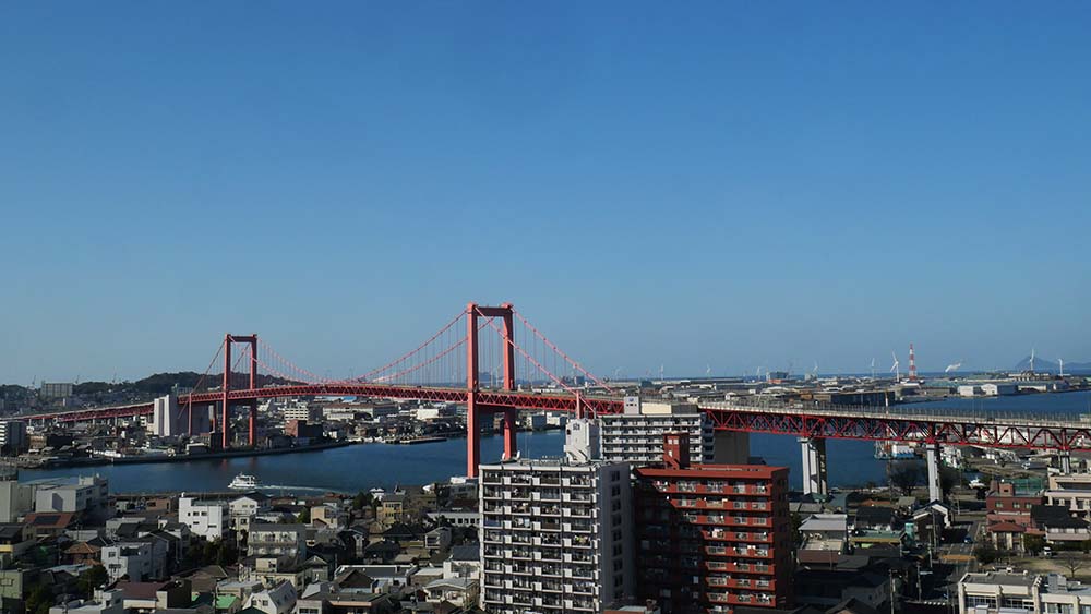 ウェル戸畑の12階からは日本晴れの若戸大橋