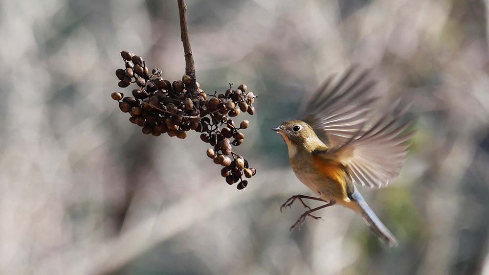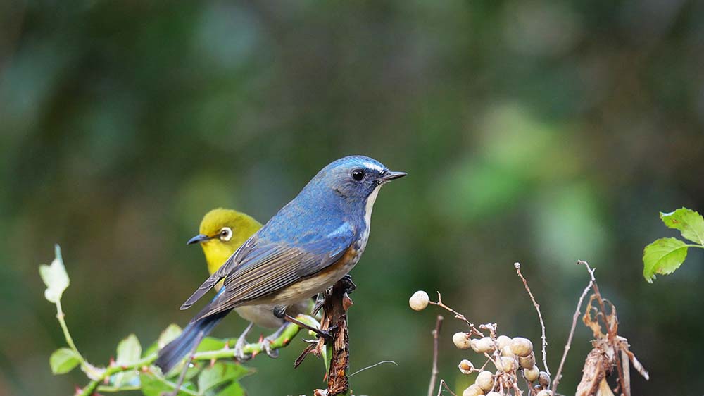 ハゼノキPのルリビタキとメジロ