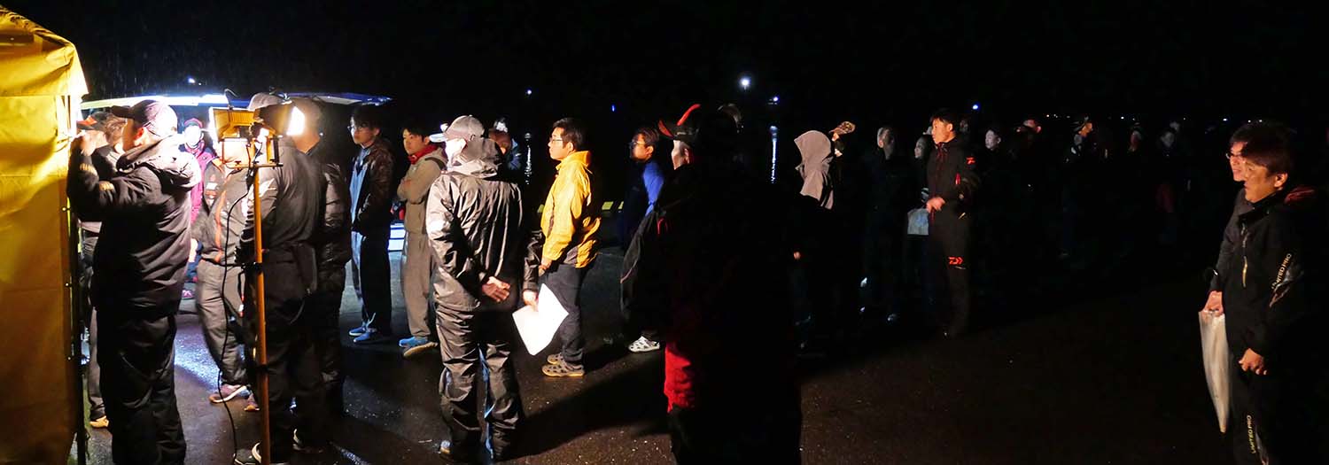 今年で13回目となるファイアカップ。受付を180名で終了し、当日の参加はキャンセルなどが若干出たものの、個人主催の釣り大会としては最大規模?