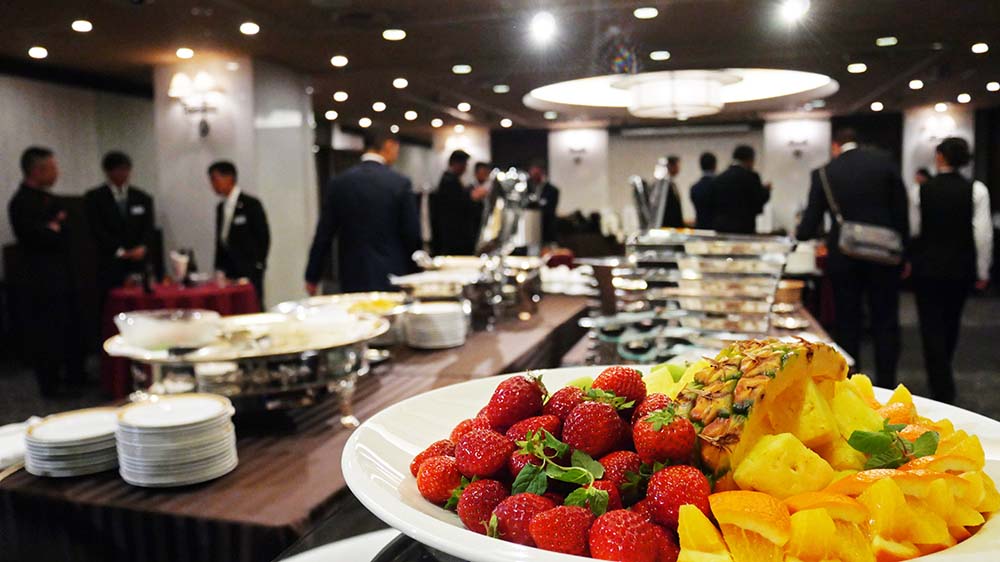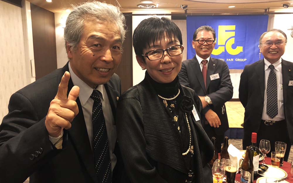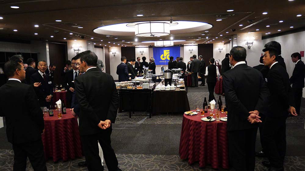 続いて祝賀の立食パーティでは、高園九州地区本部長の挨拶と乾杯の後、私たちは大分から参加の一ノ宮さんを囲んで美味しく楽しく時を過ごしたのです。締めの挨拶は昨年に引き続き私が発しましたが、有難い事です。