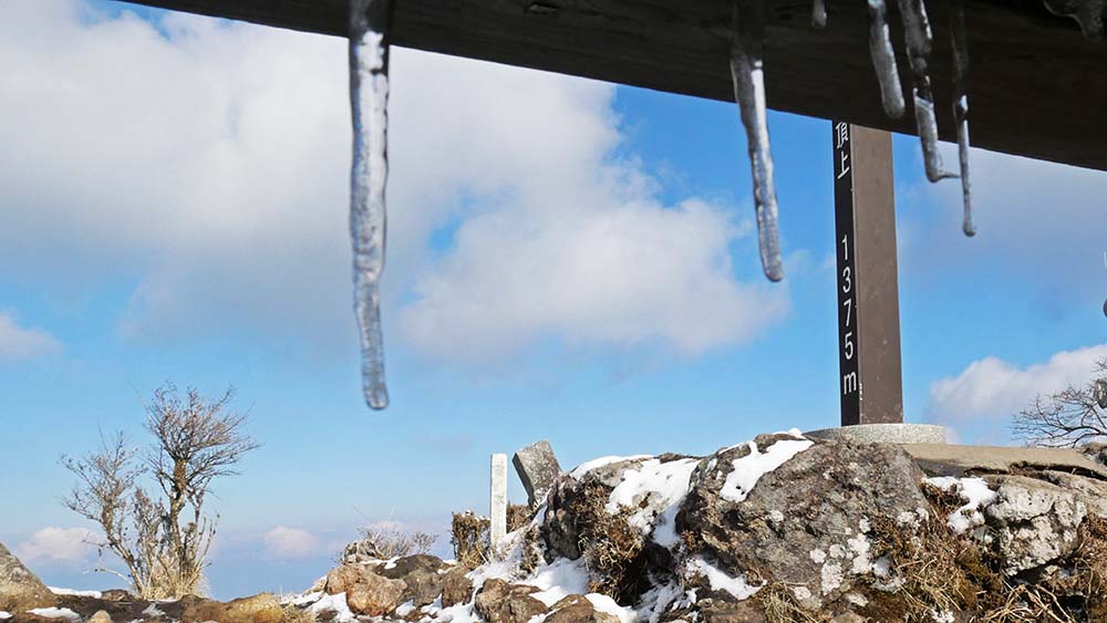 由布岳より約200mほど低い鶴見岳では、山頂付近に少しだけ残雪。