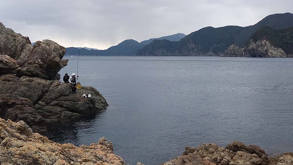 私は最後に降りましたが、四浦半島の先端に近い“クズシ岩”。キロ級グレと・カンダイのバラシが各1回・30㎝未満のグレ2匹とメバル多数・50㎝弱マダイ1匹。