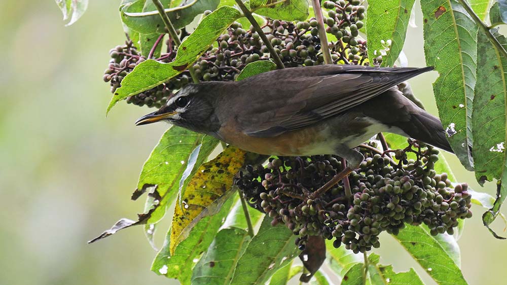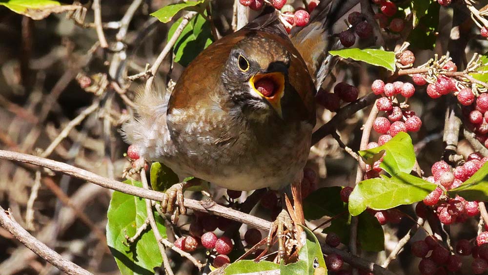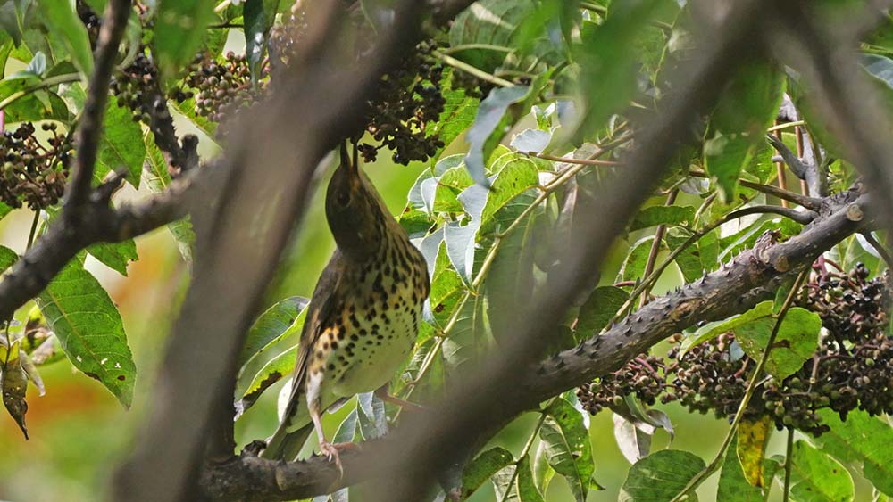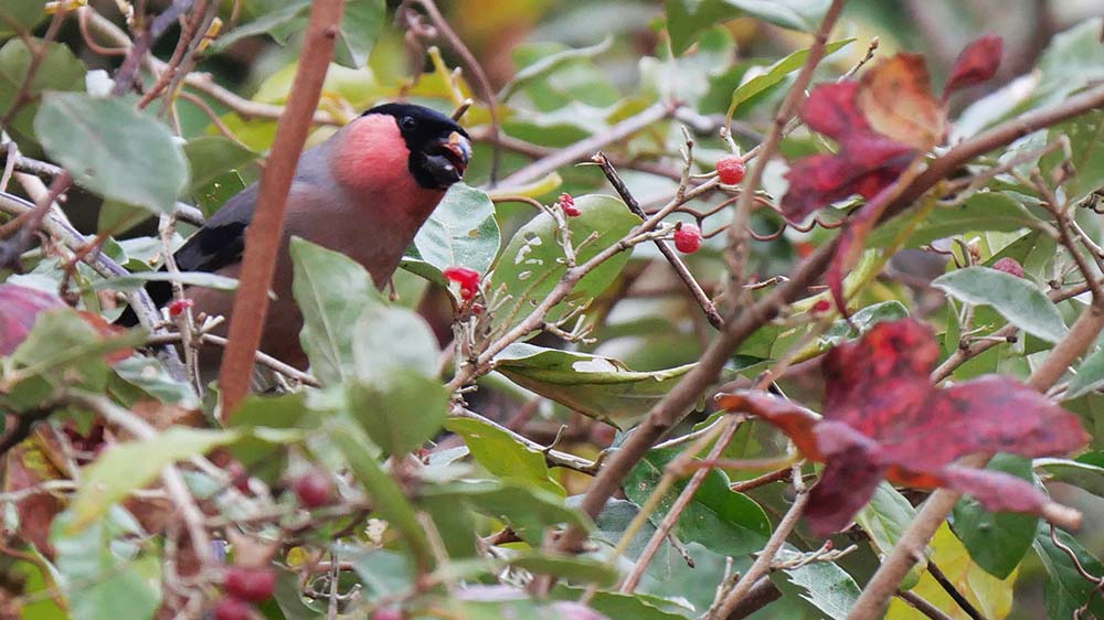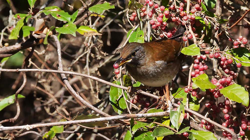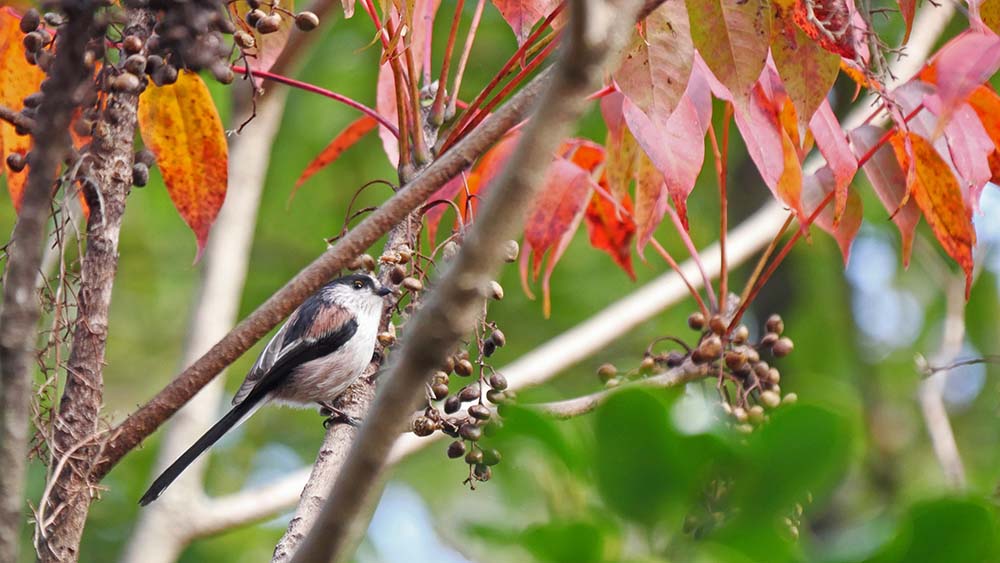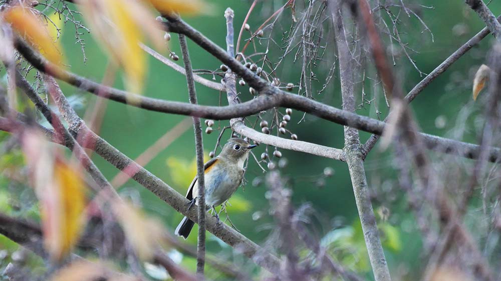 今年のルリビタキ初認日は11月6日で、カラスザンショウに来た♀。