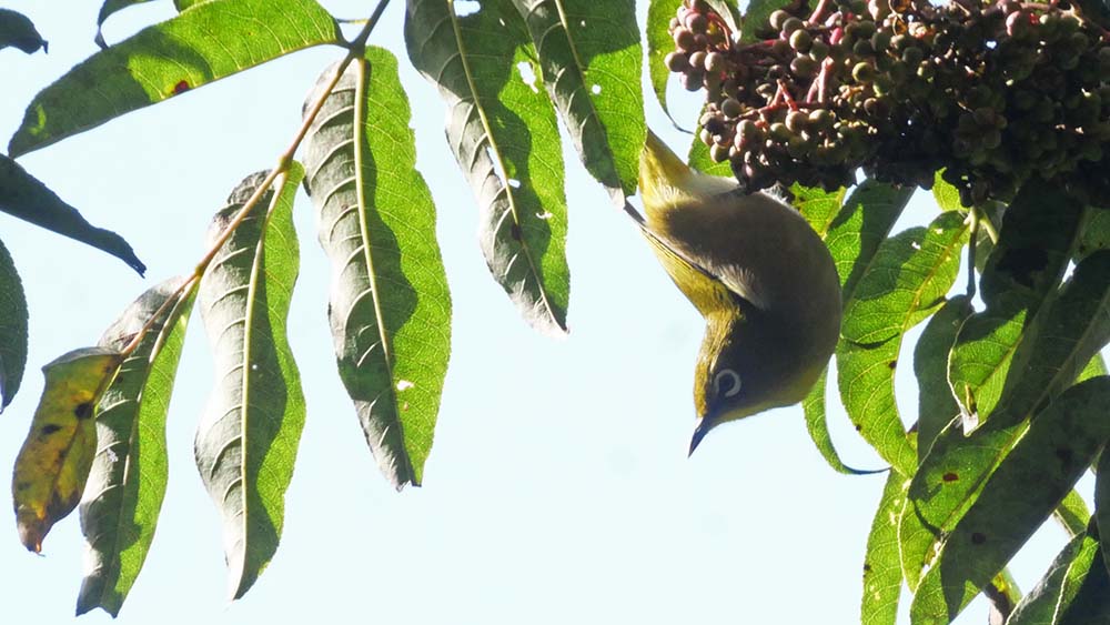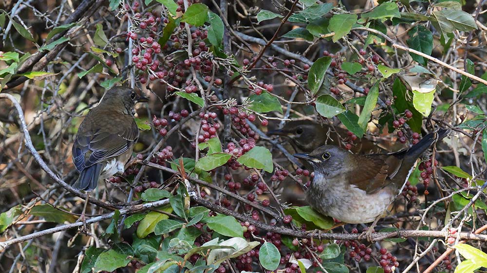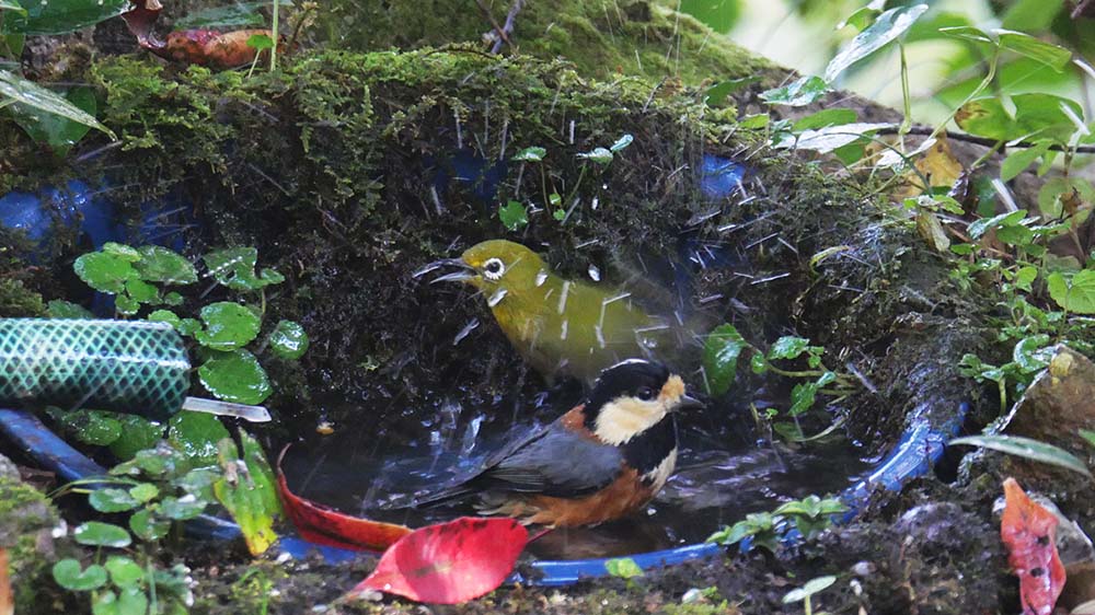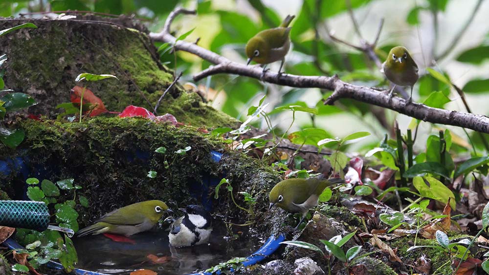 その1では、メジロ・シジュウカラ・ヤマガラ・ゴジュウカラ・ウグイス・カワラヒワ・ソウシチョウ・ガビチョウ・ミヤマホオジロ・シロハラなど10種。