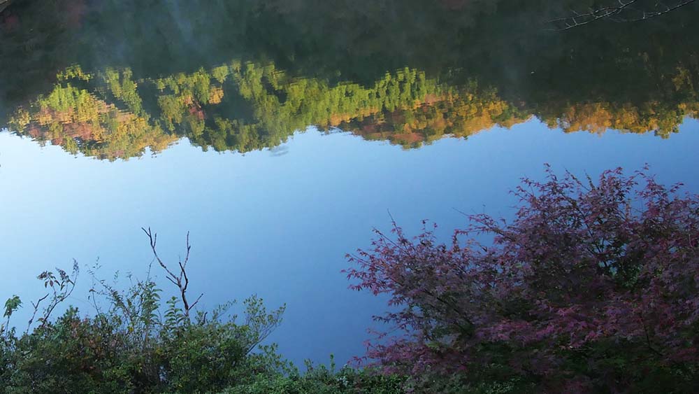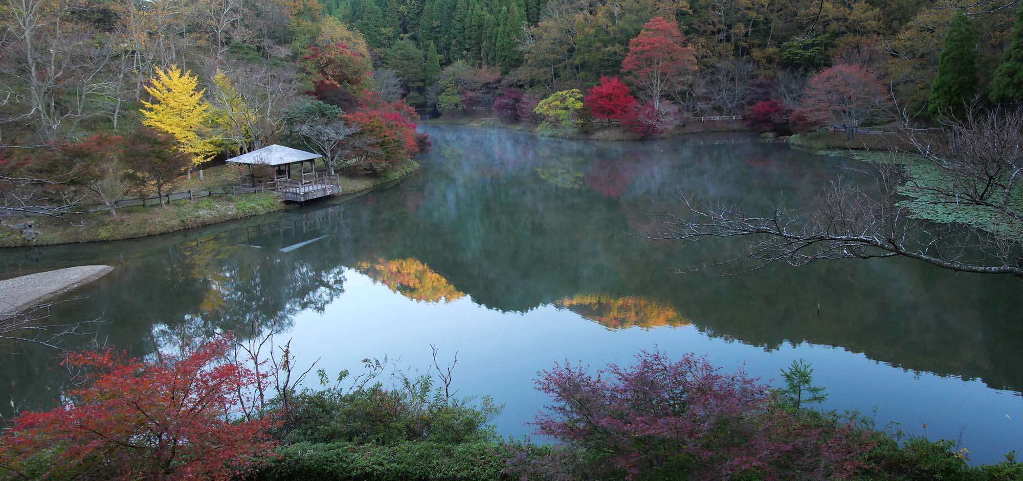 紅葉が進む県民の森学習館の池、たぶん池の名前は無いと思う