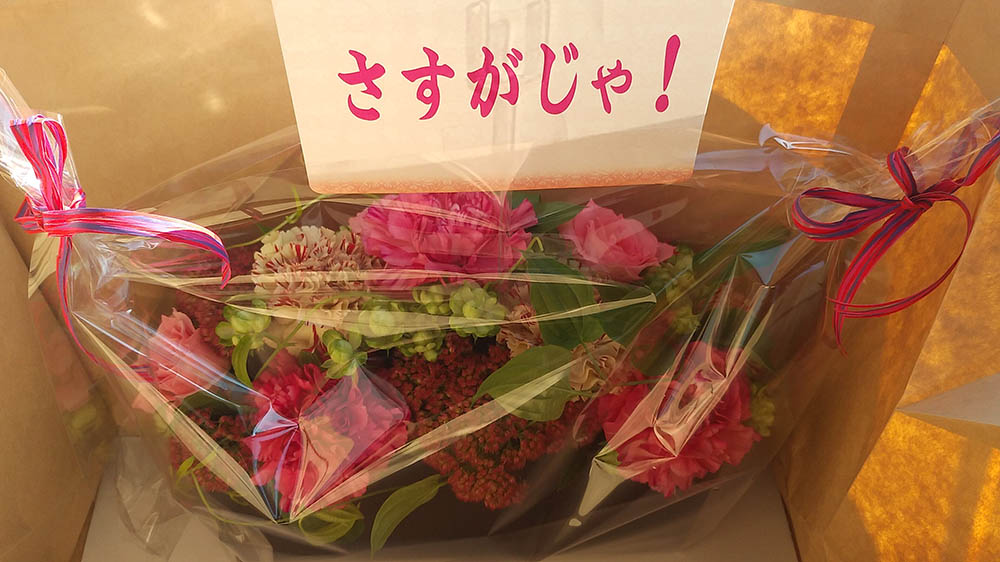 その足でOBS大分放送のインフォメーションにアレンジメントを託し・・