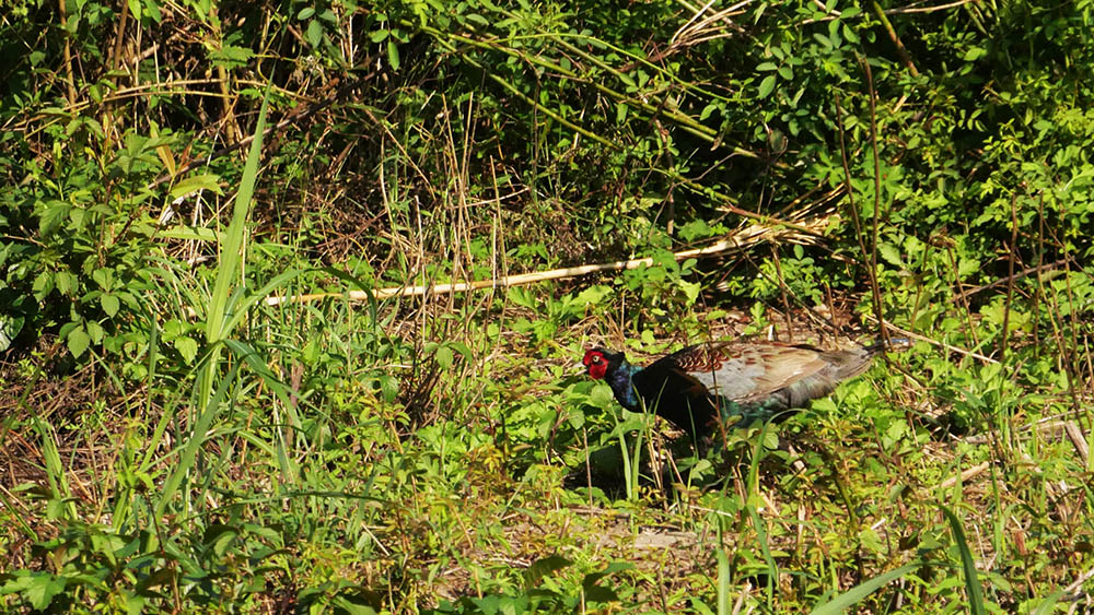 大野川にノビタキ出ず。キジがこっそり歩いていた