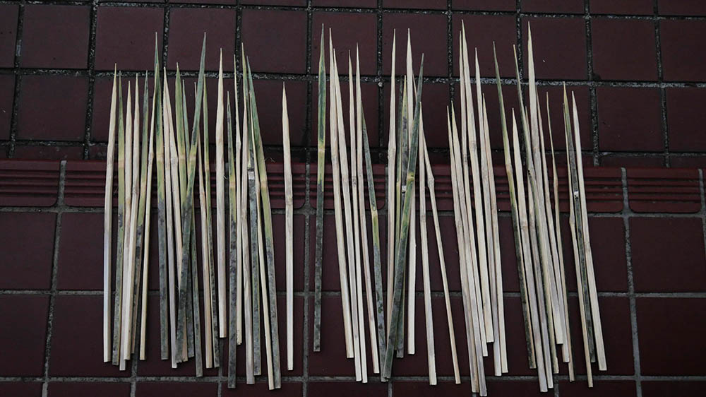 んで、鳥見会で使う竹串を50本ほど作成、5時40分から15時までの勝負が終了。
