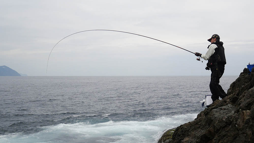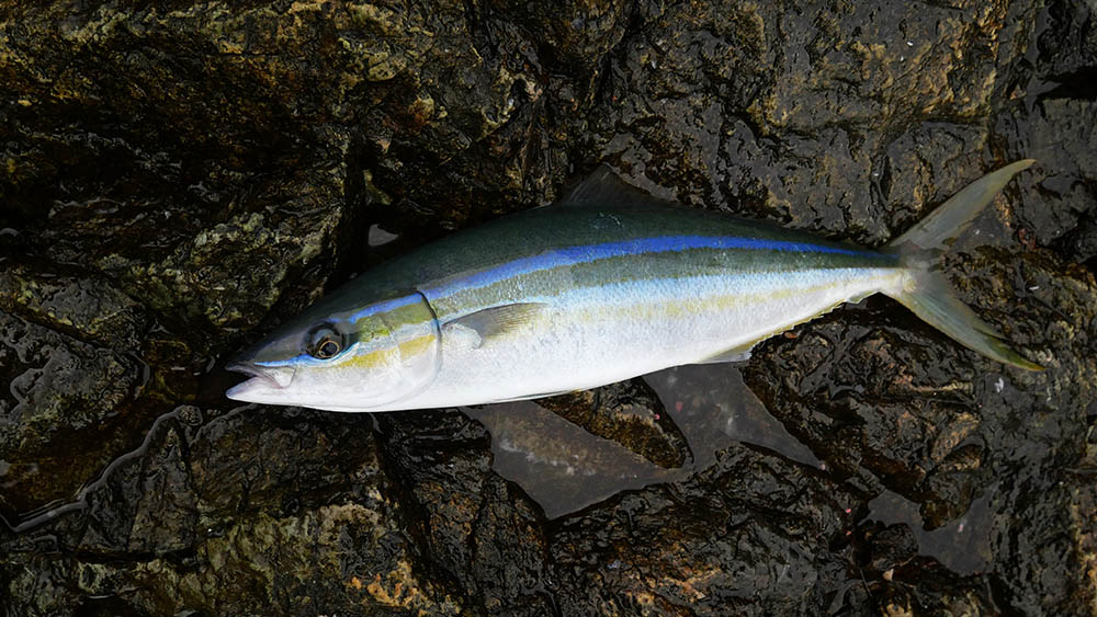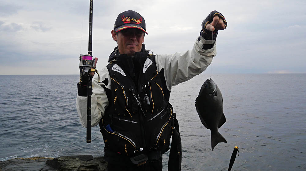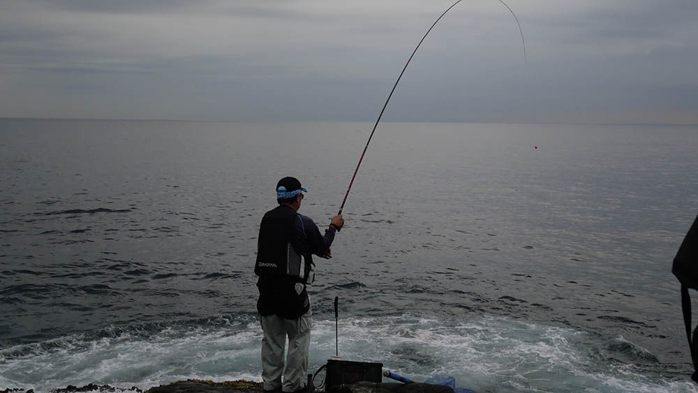 朝9時ごろまで上り潮が続いて、地向きのポイントは潮が動かない。よってそれまでは沖向きで竿出し、40㎝位のオナガが躍り出た後は小型のツムブリなど。