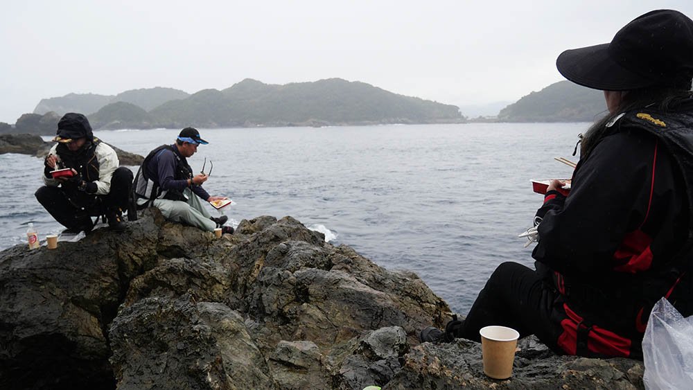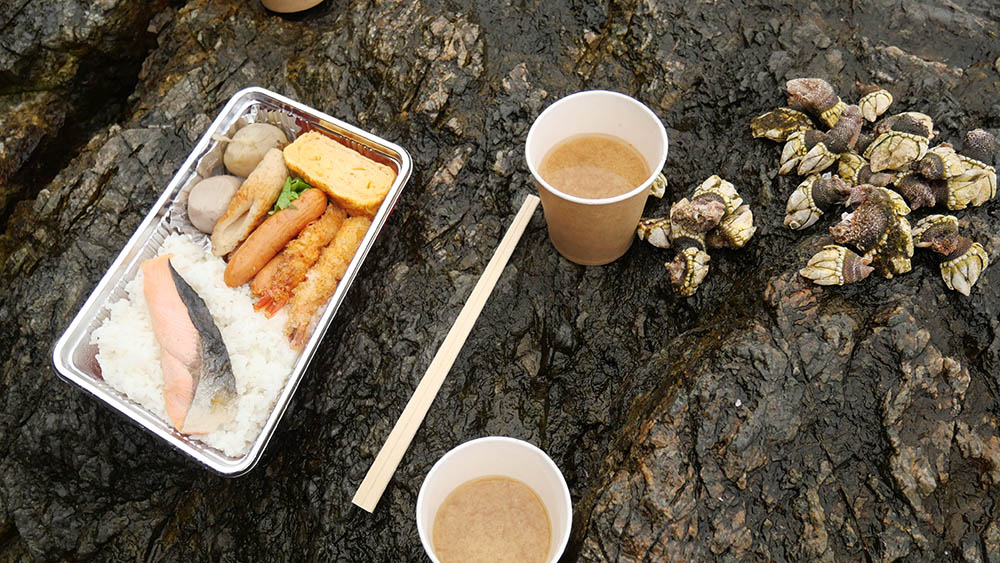 後藤さん差し入れ弁当をとカメノテのみそ汁など