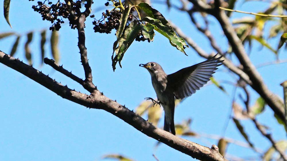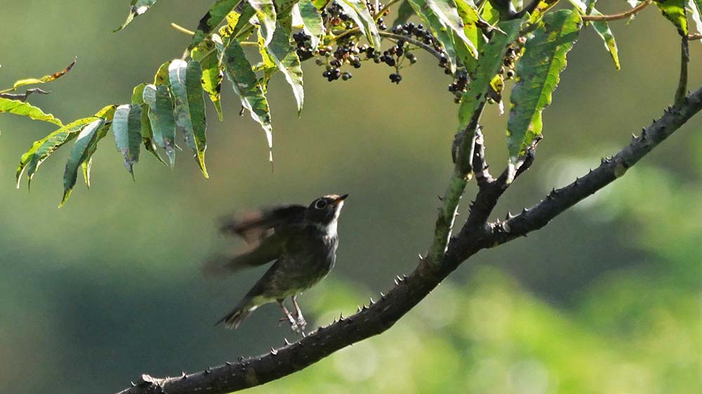 他の小鳥には目もくれずサメビタキを狙い続け、写真で見る限り確実に3個体は撮れていました。もしかすると4~5個体ほどいるのかも知れません。