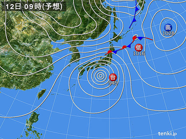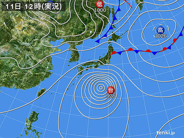 伊豆諸島付近は黒潮が流れているから、925hPaから勢力の衰えは少しだけ。