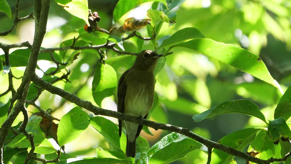県民の森でエゾビタキを見るのは8月下旬から10月中旬頃までで、秋の南下の時に比較的容易に確認できます。とは言っても、今年の県民の森は彼らが好んで食べるミズキとクマノミズキの実が生っておらず、例年通りには確認できません。