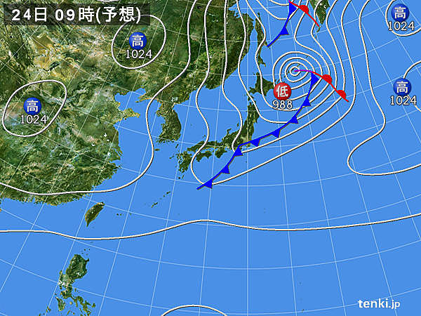 日本語本気象協会から借用(大分は北風・晴れ)