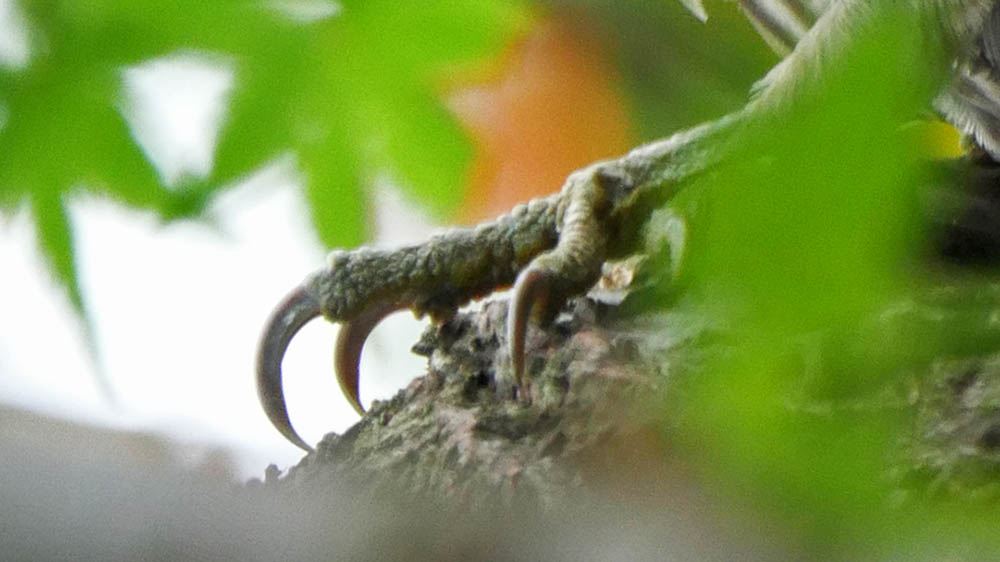 最終的には、おなかが枝に着いてしまうので一本足も見えなくなる。