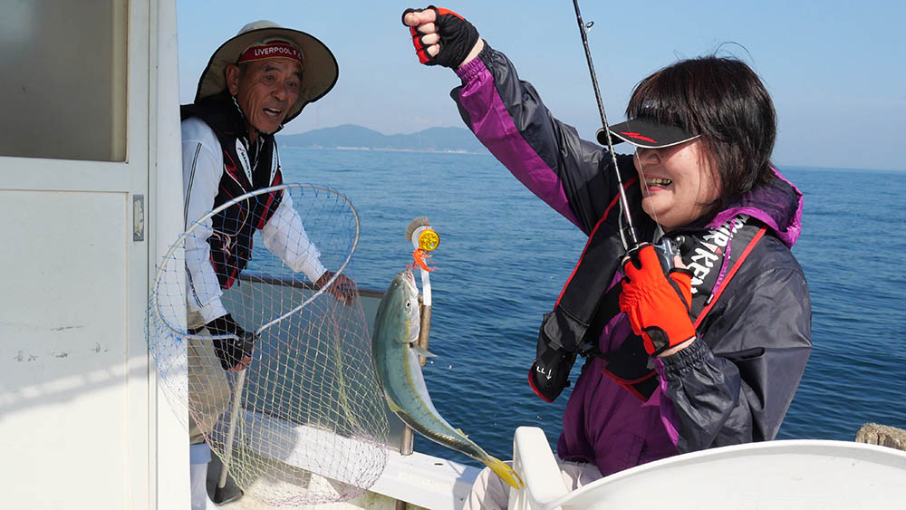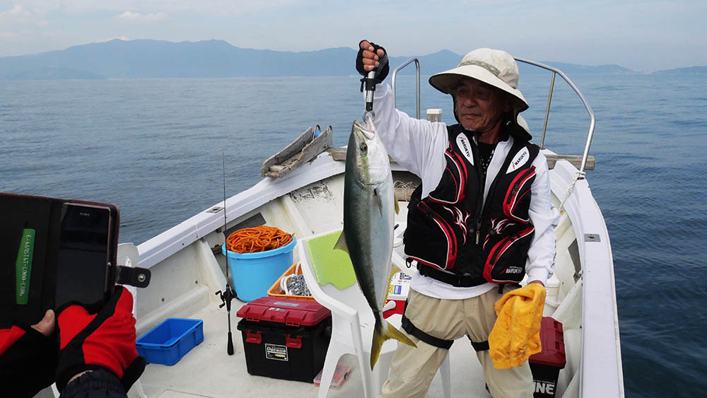 漁師さんは3本竿、ブリも釣れていた