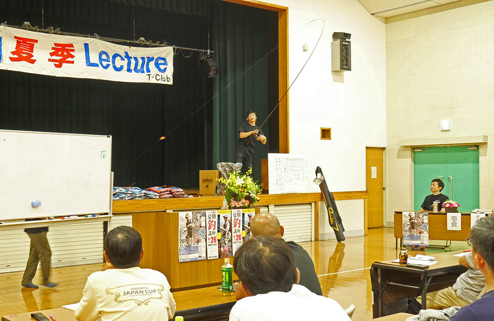 キムの話は、オナガに的を絞ってナガミゾの下げ潮攻略法など、改めて渡礁して狙ってみたいと感じました。壇上から、フジモンオナガ相手にやり取りをしてくれて、リールを巻く速さが沖と手前とでは違うことを実践してくれた。