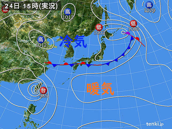24日の天気図では、エゾビタキは九州には来ていない