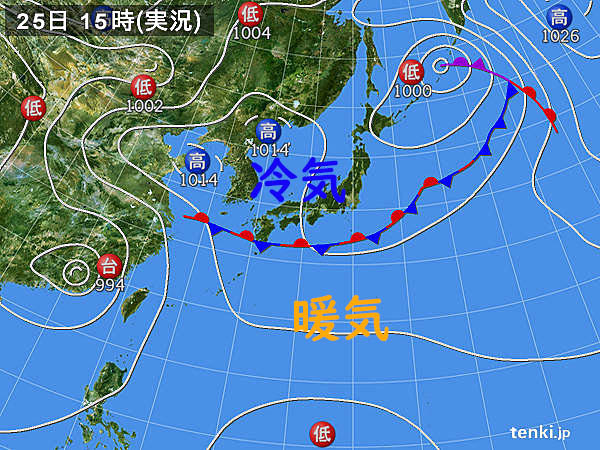 25日の天気図ではエゾビタキの一部が九州到達か?26日もほぼ同じ気圧配置