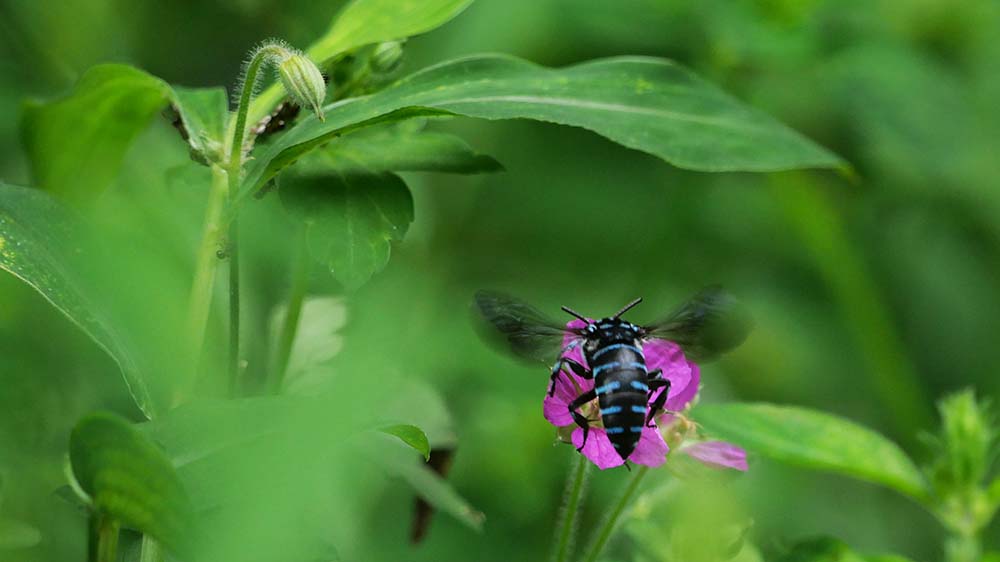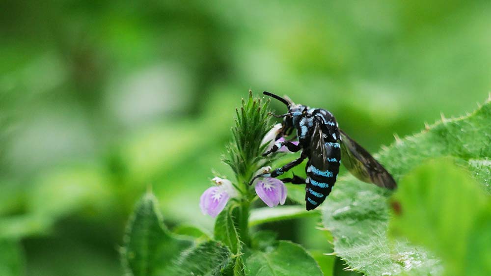 県民の森で撮影したブルービー(ルリモンハナバチ)