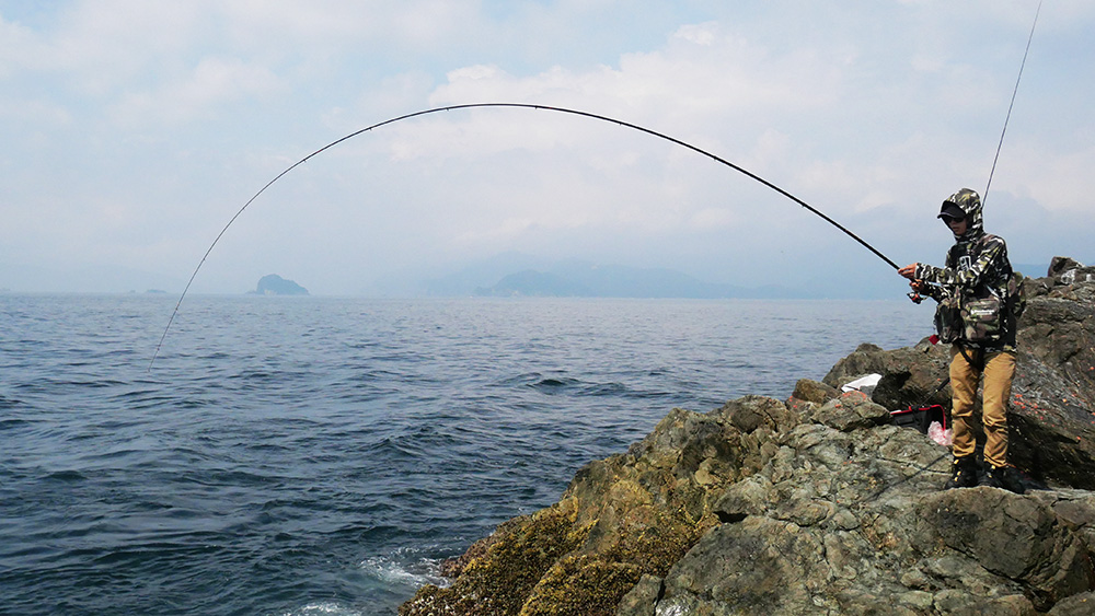 マキエ作りから30mほどの遠投で沖を釣る方法。