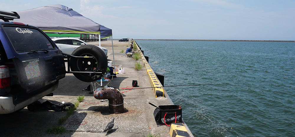 場所は大在公共埠頭の一角で、8月後半からチヌが良く釣れる所。