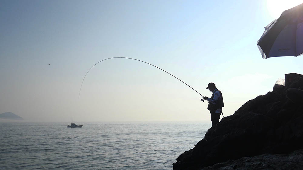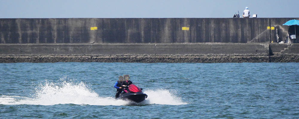 横一文字にも釣り人、夏のレジャーも