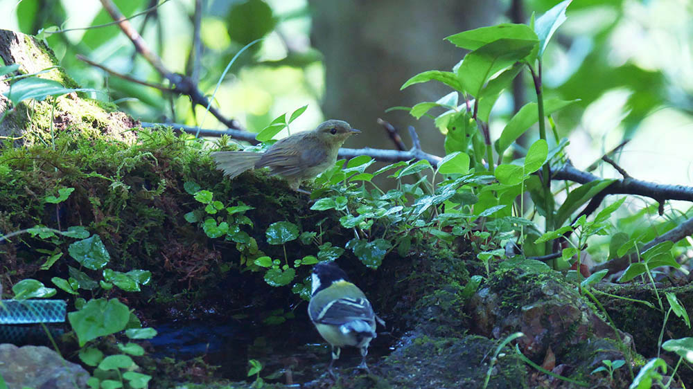 留鳥のウグイス若とシジュウカラ成鳥
