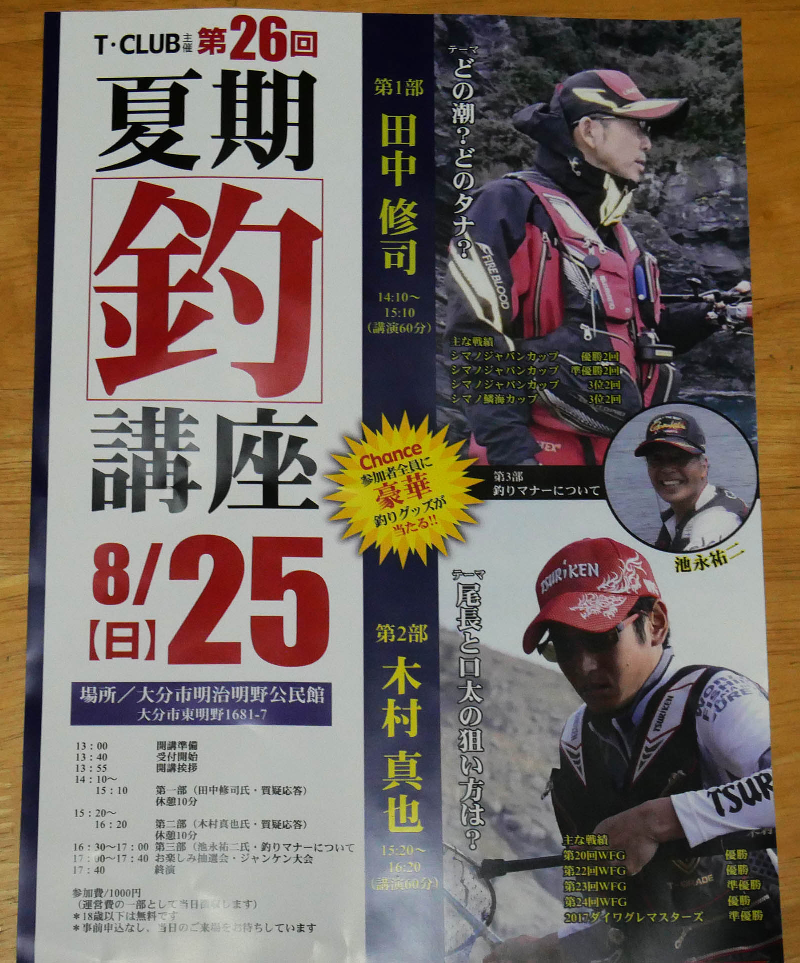 18歳以下は無料、抽選会の権利有り。その他は一人1000円の講座料金ですが・・