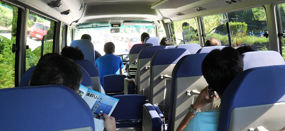 釣研FG東九州支部の面々とマイクロバスで一路福岡へ。