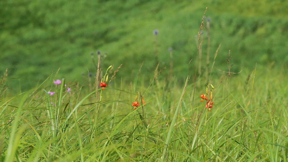 今朝から確認、ノヒメユリは2ヘクタールくらいの広さで200株以上を確認。