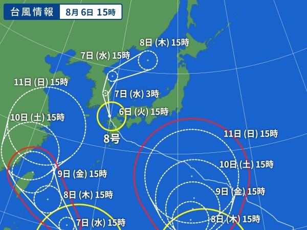 続いて台風9号が東シナ海方面へ、更に台風10号が日本の南海上を目指します。