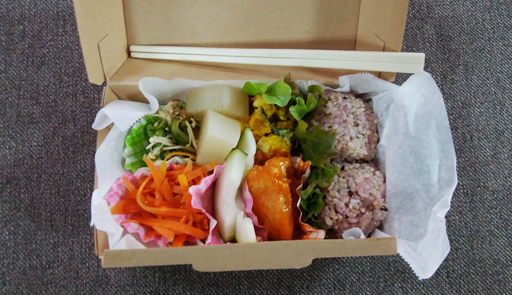 今日の昼食弁当、男には少な目でしたが美味い。驕ってくれました