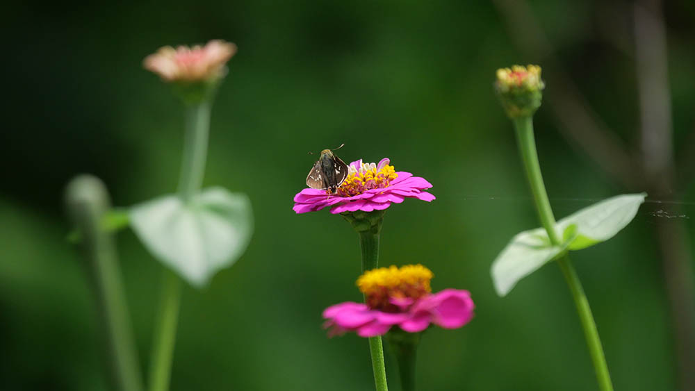 庭の花にイチモンジセセリ