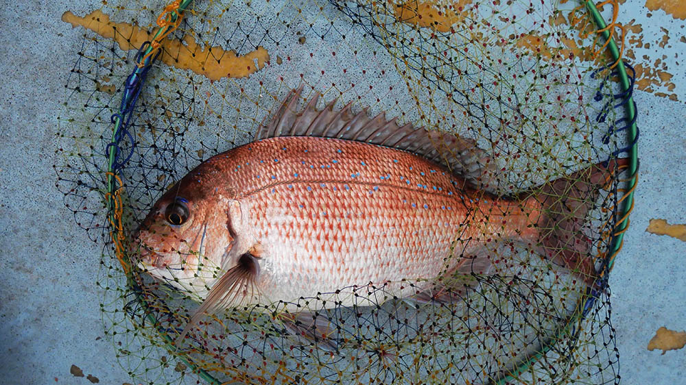 湾内の生簀周りは春に大型マダイ、沖の生簀周りは夏が大型マダイのシーズン。