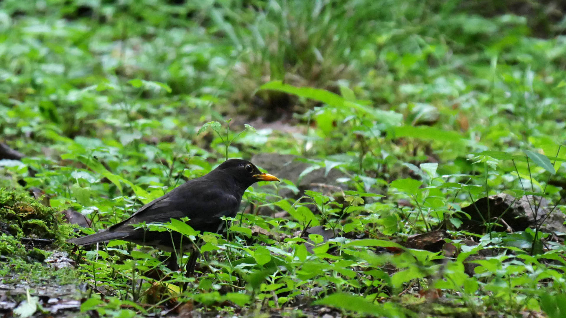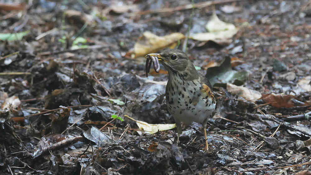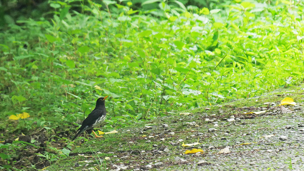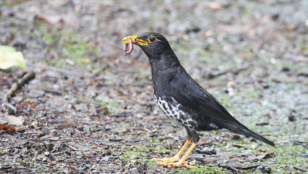 この界隈に縄張りを持つクロツグミの♂親がやっと現れました