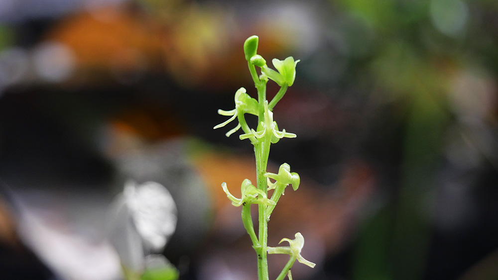 シロバナコクランと名付けた、緑色の花を着けるコクラン