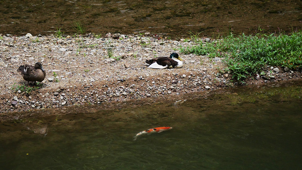 アヒルとコイの競演も・・