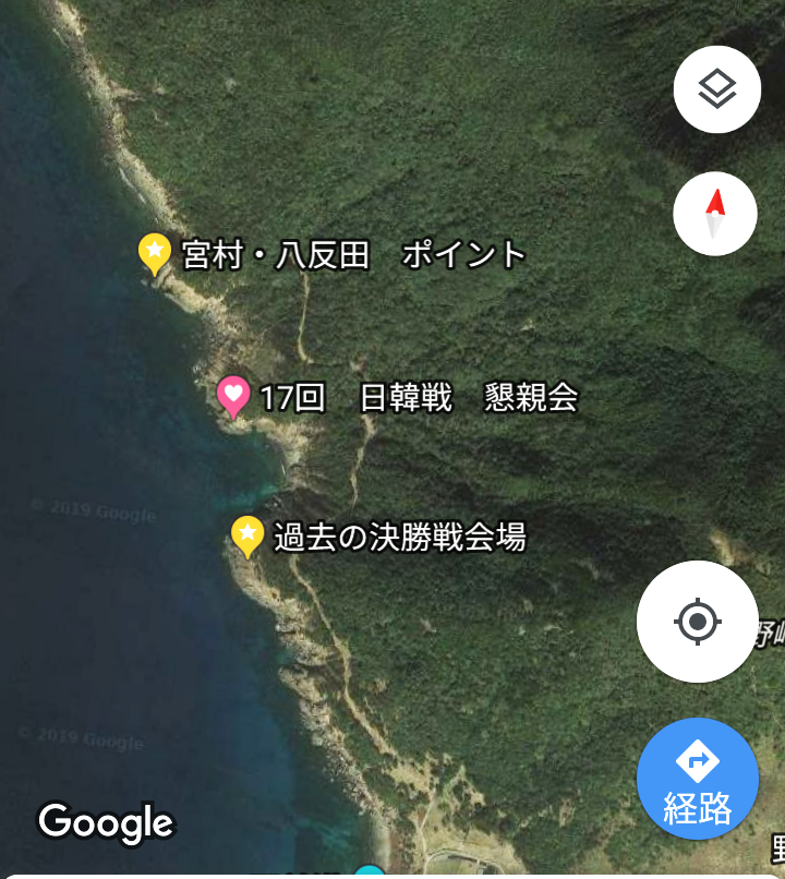 上のハートマークが懇親会で私達が釣った所・下のハートマークが決勝戦会場