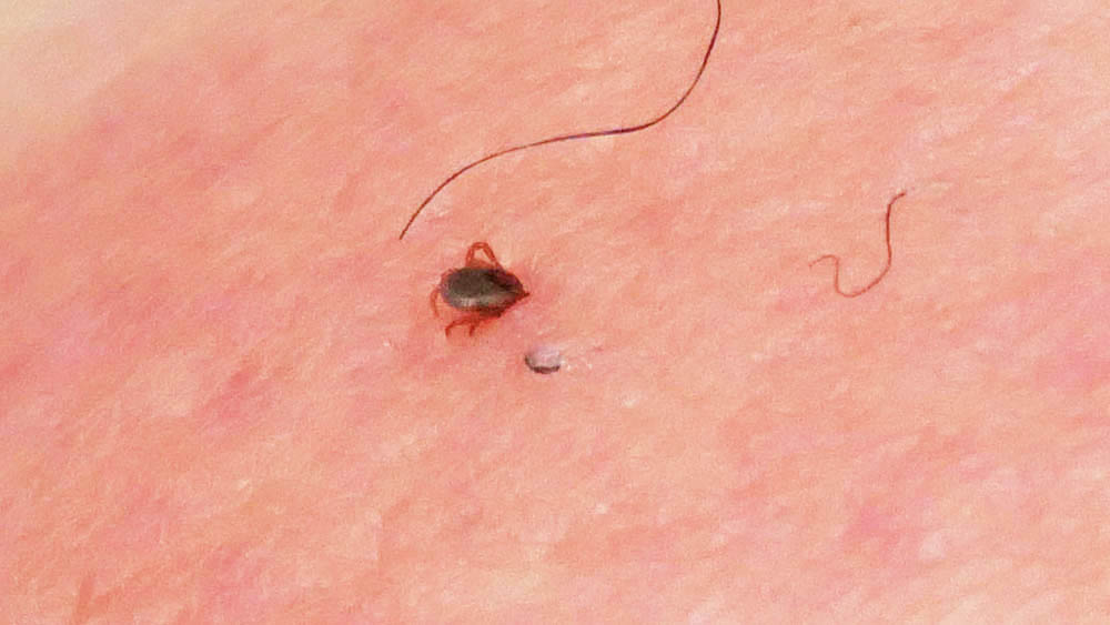 吸血中、1.5㎜ほどのマダニの仔(今回は2匹)